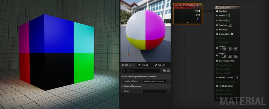 World Position выводит положение текущего пикселя в мировом пространстве.