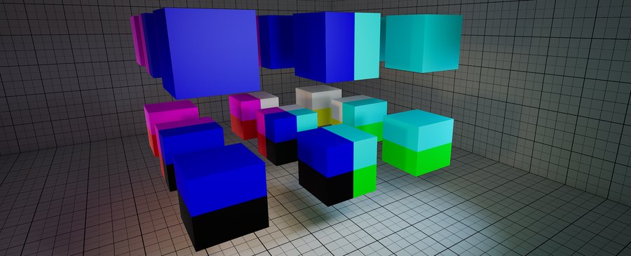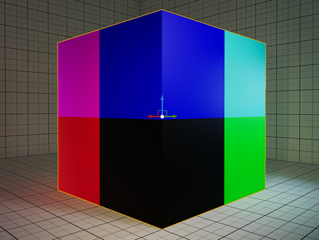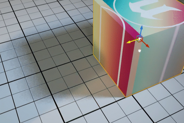 Если подвинуть куб — текстура не будет двигаться вместе с мешем, так как она проецируется относительно мировых координат и не привязана к UV развёртке объекта.