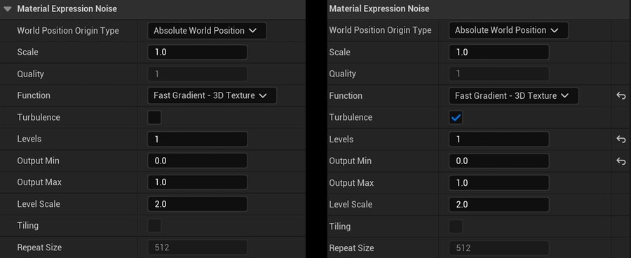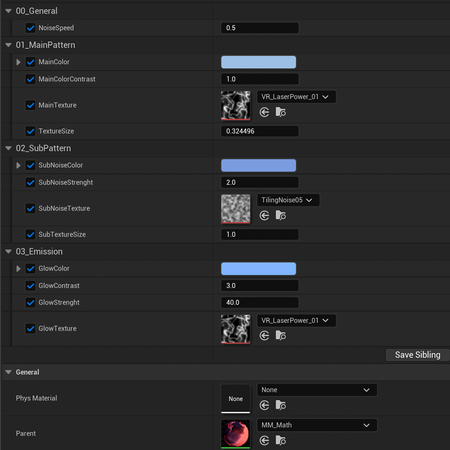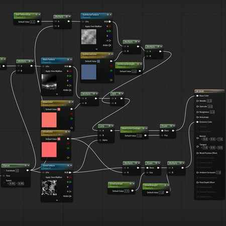 Например, добавив в MM переключатель «UseSubNoise», мы получаем возможность управлять сложностью паттерна. Когда переключатель выключен, часть шейдера, отвечающая за настройку дополнительного нойза, полностью исключается из финального кода, если же переключатель активирован, в Material Instance автоматически появляются параметры для его редактирования. Это создает гибкую и одновременно производительную систему.