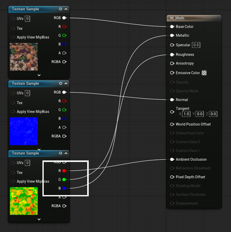 Component Mask — это нода в Material Editor, которая позволяет выбирать и изолировать конкретные каналы цвета из текстур или других данных.