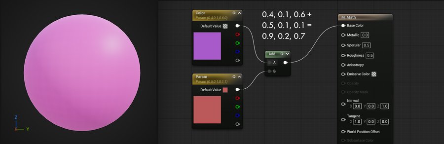 Add — это одна из самых фундаментальных математических нод в Material Editor, которая выполняет сложение входных значений.