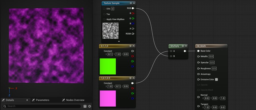 В следующей подглаве будет подробнее рассмотрен набор наиболее часто используемых математических нод и их применение.