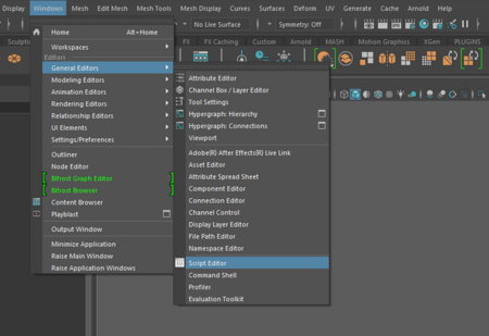 В Maya для написания и тестирования скриптов используется Script Editor — встроенный редактор, где можно писать и сразу запускать код на MEL и Python.
