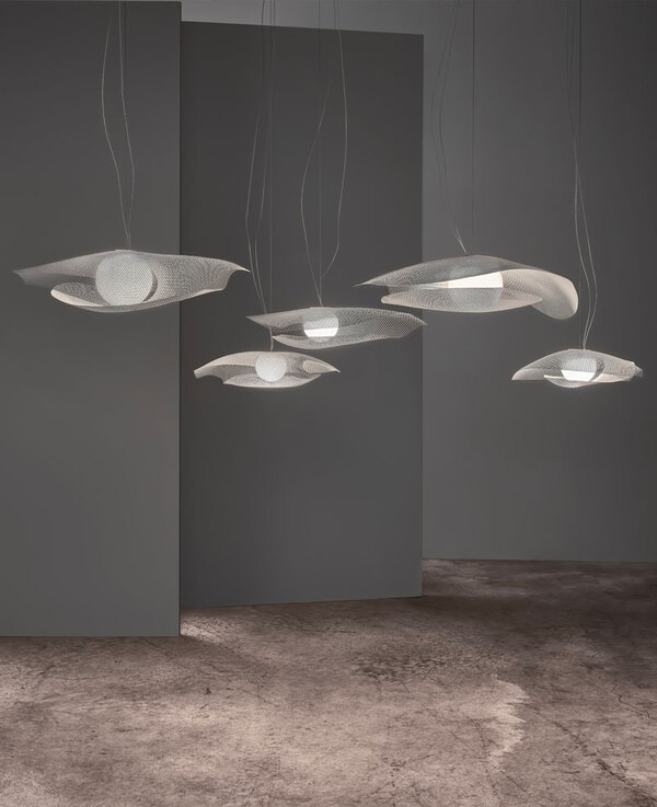 Лампы бренда Slamp благодаря их текучим линиям имитируют движение воды или ветра, создавая мягкий световой эффект.