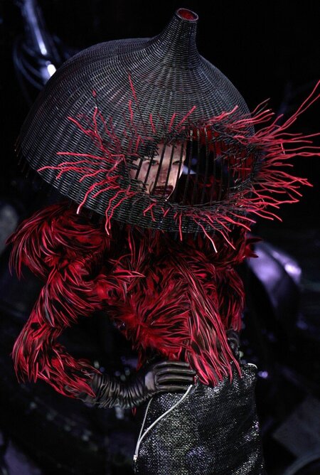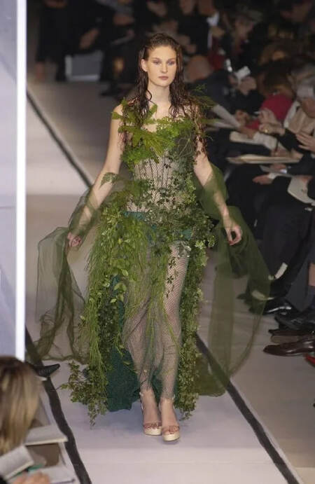 Jean Paul Gaultier 2002. Готье в этой коллекции показывает, как мода может стать медиатором между природой и человеком. Образы являются целыми произведениями искусства, которые исследуют связь между естественными формами, фантазией и анатомией.