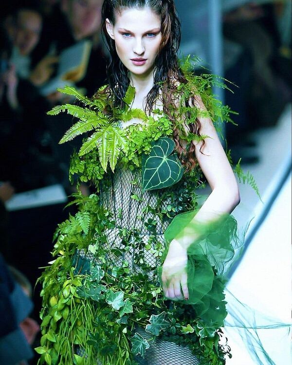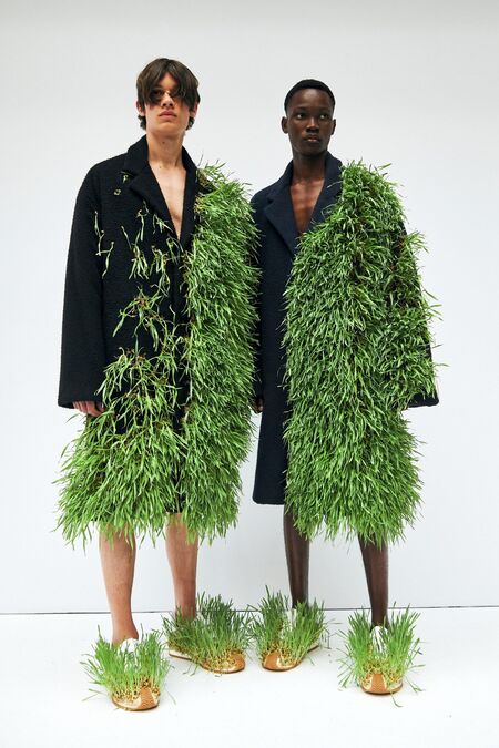 Loewe 2023. «Новая кожа, которая связывает человека с природой. Одежда, которая самым физическим образом воссоединяет нас с природной сущностью» — так Паула Уларги Эскалона высказалась о коллекции. Дизайнер создала одежду, где в прямом смысле слова растет настоящая трава. Она очень понравилась Джонатону Андерсон, и он предложил ей коллаборацию. Так, это невероятное искусство появилось на подиуме бренда Loewe. Траву выращивали около 20 дней, ежедневно ухаживая за ней и поливая.