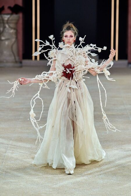 Коллекция Iris van Herpen «Meta Morphism» (осень-зима 2022) продолжает демонстрировать эволюцию биоморфизма в высокой моде. Основное внимание в коллекции уделяется темам трансформации и взаимосвязи между природой и человеком.