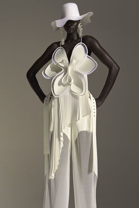 Коллекция: «Sensory Seas» (2020) Вдохновлена морской жизнью. Платья с волнообразными фатурами напоминают кораллы и медуз. Использование лазерной резки и 3D-печати создаёт эффект органической структуры.
