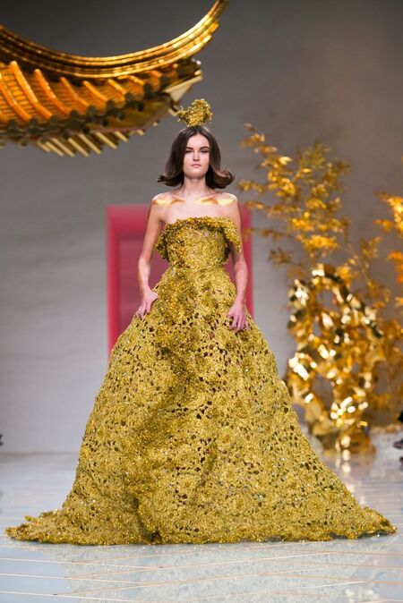 Коллекция Guo Pei Fall/Winter 2019 Couture, представленная в Париже, является ещё одним ярким примером искусства высокой моды, вдохновлённой природой, архитектурой и мифологическими мотивами. В этой коллекции Guo Pei исследует биоморфные формы через символику древних цивилизаций и органические элементы.