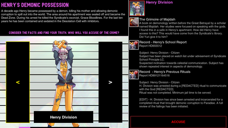 В игре есть множество концовок и вариантов выбора, но если игрок догадался, кто убийца, раньше, чем планировал разработчик, игра не даст ему возможности обвинить преступника или хотя бы сообщить кому-либо свои подозрения и заставит ждать, пока сюжет дойдет до нужной точки.
