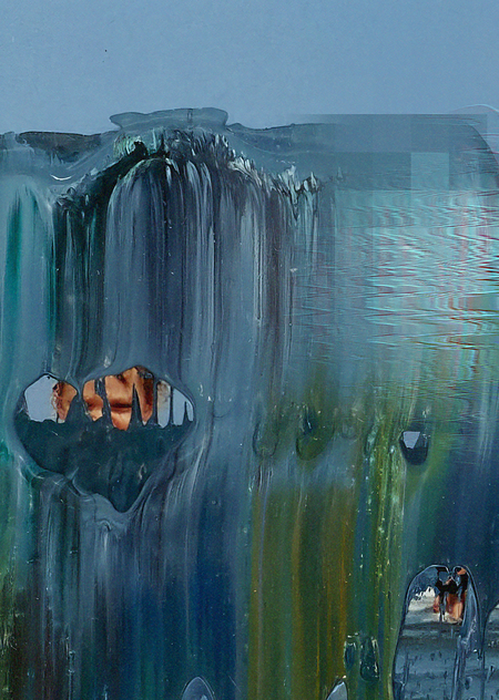 Александр Тиней работает с найденными фотоматериалами, часто изображая людей со странными синими татуировками и светящейся белой кожей на тёмном фоне. Его картины создают тревожное ощущение, напоминают фотографии со вспышкой, которая ярко подсвечивает главный объект и скрывает в тени всё остальное, скрытое и недоступное.