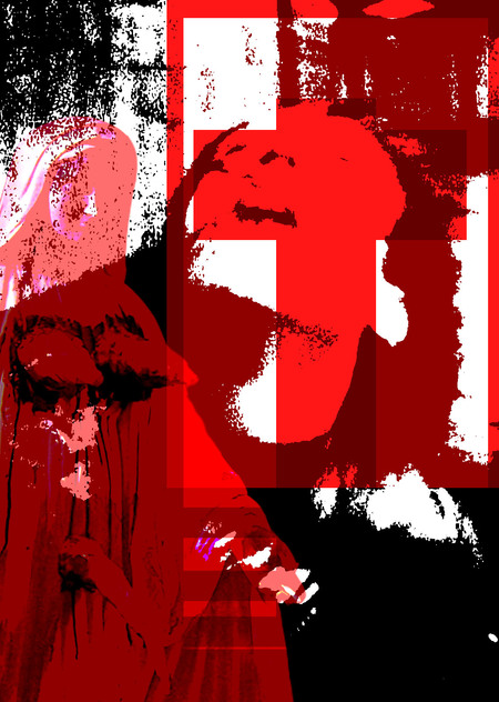 Белый и черный, которые в одежде одержимых монахинь призваны олицетворять движение мрака к свету, «загрязняются» красным, цветом крови и адского огня. Красный цвет в данном случае нарушает курс движения зла к добру, добавляет элемент человечности, а вместе с этим и порочности, как бы добавляя новую точку на системе координат, создавая изначально иерархическую форму треугольника.