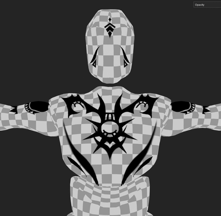 Для первого эксперимента в программе Substance Painter была заранее отрисована маска Opacity, которая хранилась в Alpha канале текстуры Base Color.
