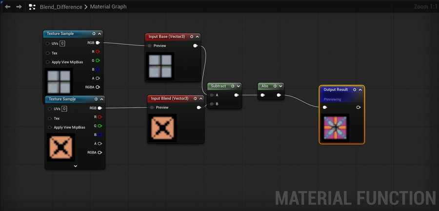 Демонстрация готовых Blend нод-функций в Material Editor.