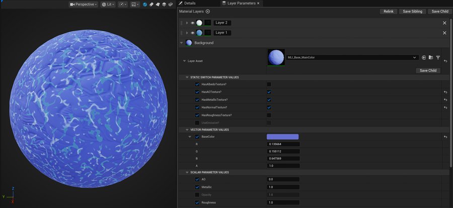 Material Layer Blend — это логика, по которой слои материалов смешиваются в MI. Помимо базовых смешиваний [к примеру, с помощью градиента] можно настроить кастомные MLB с динамически изменяющимися масками / параметрами.