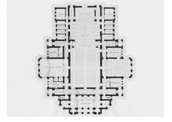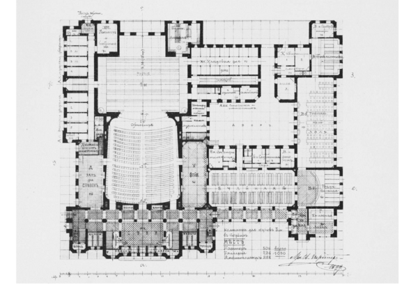 Проект народного дома им. Шехтеля, начало ХХ века, архитектор Ф. O. Шехтель, планы