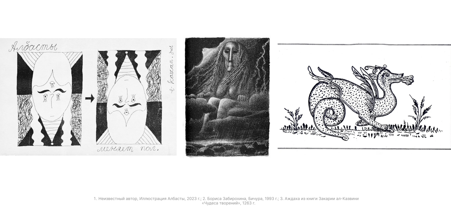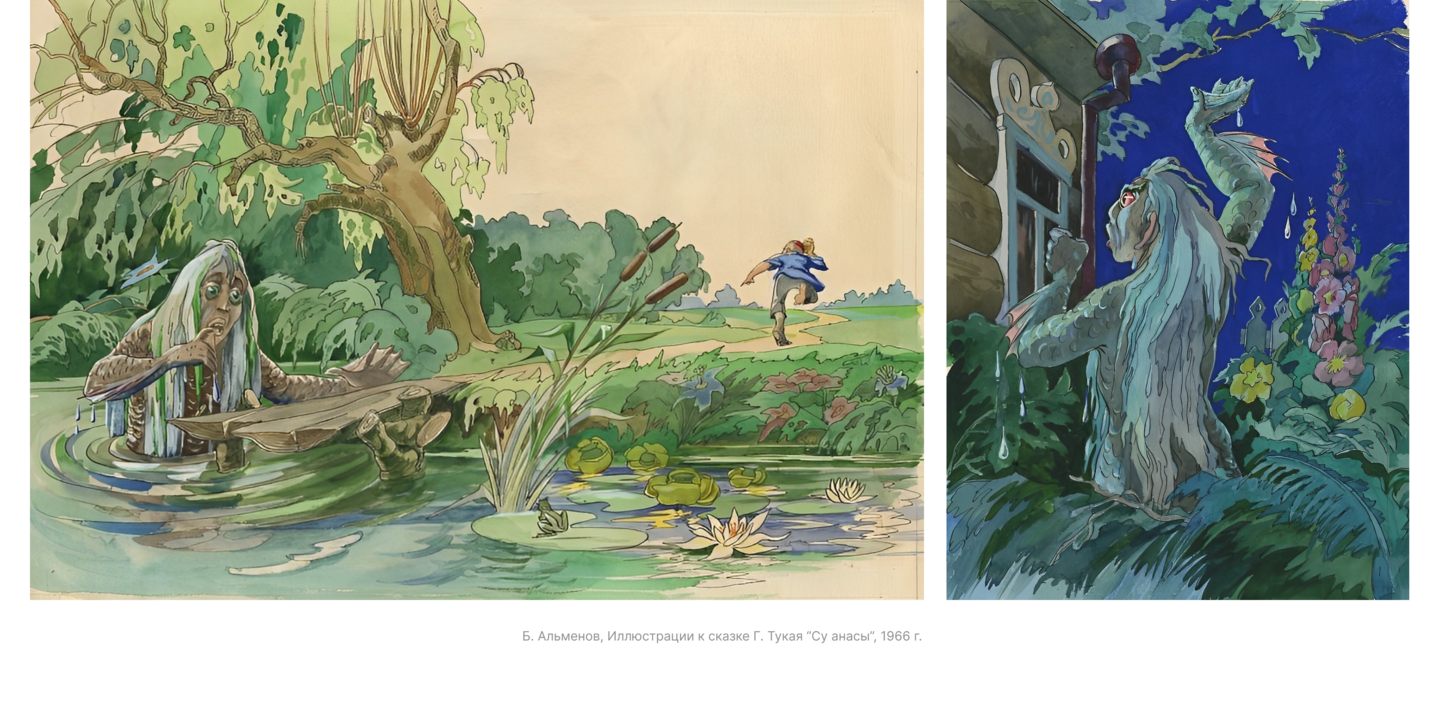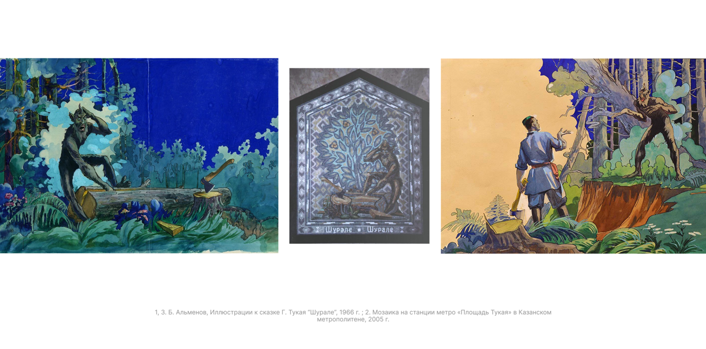 Шурале. Иллюстрация Байназара Альменова к одноименной сказке Габдуллы Тукая // Bestiary [Электронный ресурс]. URL: http://www.bestiary.us/images/shurale-illyustratsiya-bainazara-almenova-k-odnoimennoi-skazke-gabdully-tukaya (дата обращения: 12.11.2025).