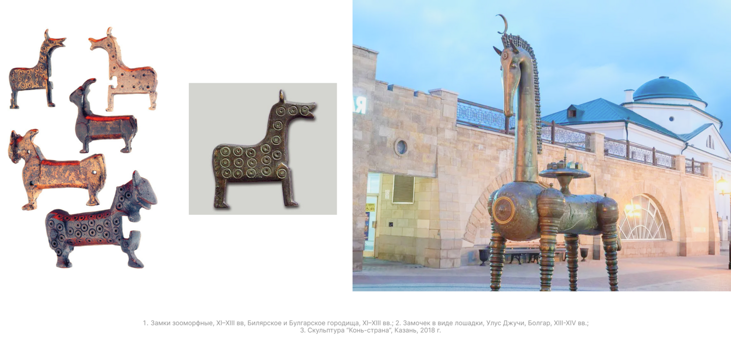 Зооморфные образ Образы, отсылающие к татарской культуре можно поделить на две категории. Более исторические и древние — зооморфные, и более новые — мифологические.