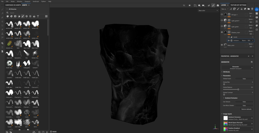 Генераторы — это процедурные инструменты Substance 3D Painter, автоматически создающие светотеневые эффекты, градиенты и текстуры на основе карт запекания.