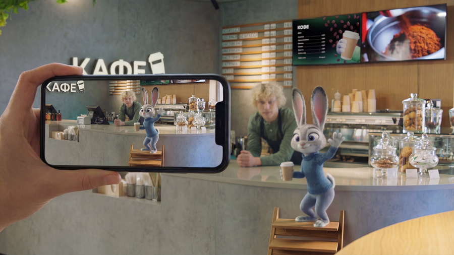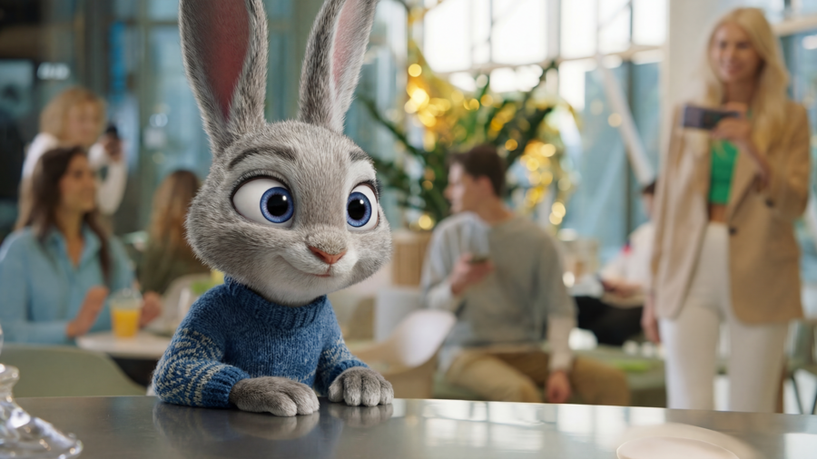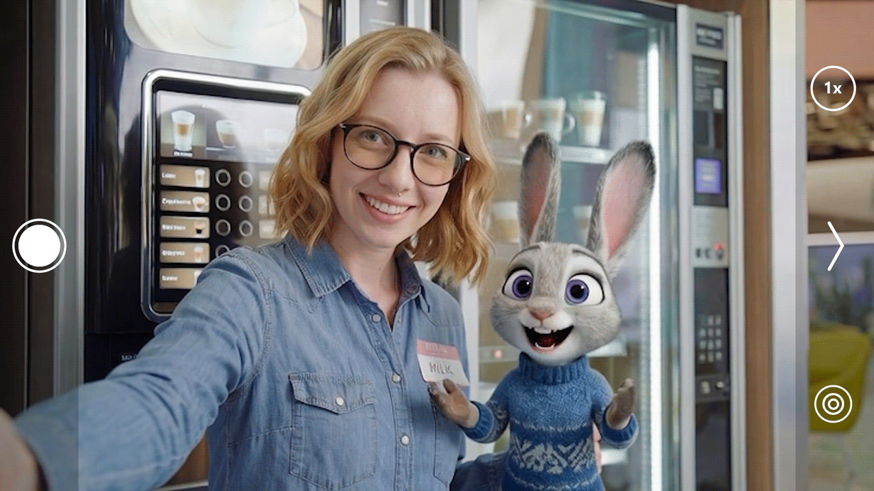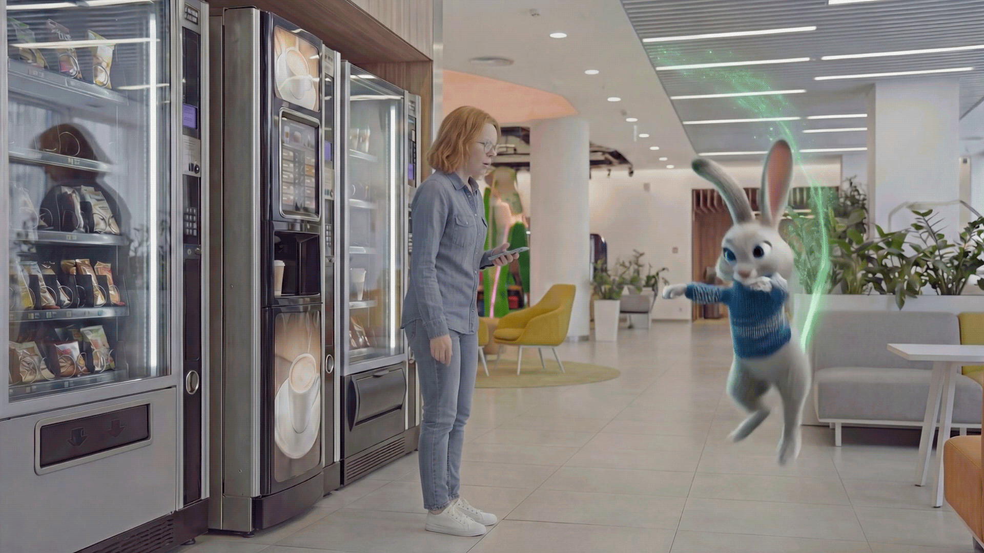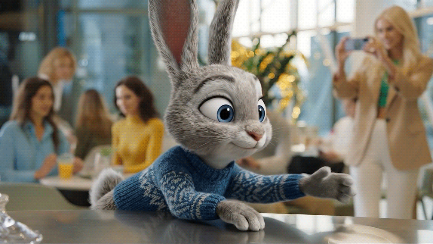 На этапе создания изображений не удалось добавить зайку вылетающего из телефона спиной в камеру, но поскольку в ролик пойдет всего 2 секунды просто магический эффект, эмоции и развивание волос создают примерно тот же эффект, что на оригинальном ролике.