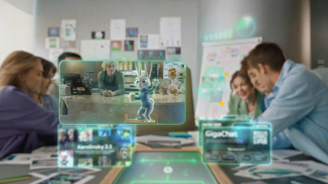Зайка увлеченно и очень быстро говорит: «Это не магия, это технологии Сбера», а затем очень долго молчит.