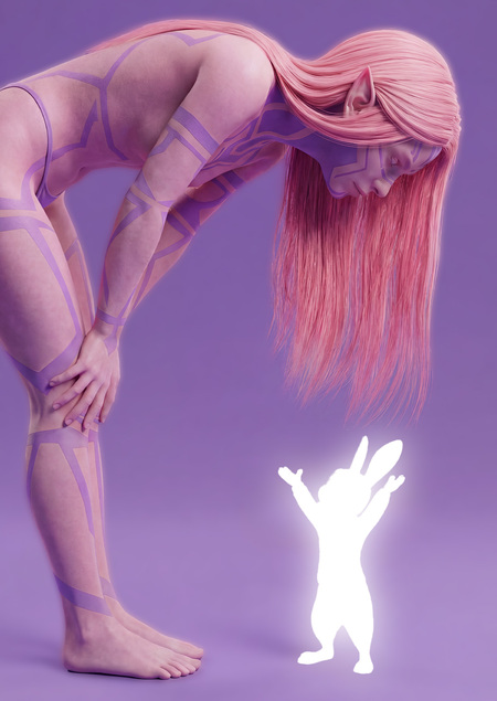 При попытке сгенерировать этот фрагмент по одному кадру я поменяла расу, и зайка стал вообще другим.