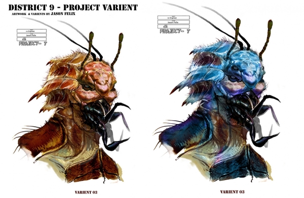 В отличие от всех предыдущих примеров, существа из «District 9» — так называемые «креветки» — разработаны как смесь насекомоподобных форм и гуманоидной структуры тела.