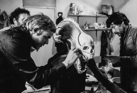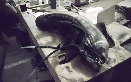 Практические эффекты при создании ксеноморфа в «Чужом» (1979) стали ключевым элементом, определившим реалистичность и физическое присутствие монстра в кадре. Дизайн Ганса Рудольфа Гигера был перенесён в трёхмерную форму с помощью полноразмерного костюма, созданного из латекса, резины и гибких материалов, которые позволяли добиться гладкой, органично-механической фактуры кожи. Внутренние элементы головы и челюсти были выполнены как сложный механический механизм: выдвижная внутренняя челюсть приводилась в движение сжатым воздухом, а слюна создавалась из смеси смазки и растворов, обеспечивающих характерную «жидкую» эстетику. Благодаря этому монстр выглядел осязаемым и «живым».