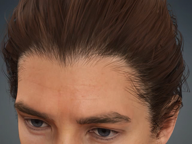 В отличие от бровей и бороды, волосы на голове не получают веса скина автоматически при применении, из-за чего линия роста волос на лбу не двигается вместе с мимикой, вызывая проникновение меша.