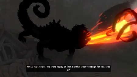 Конфликтующие монстры олицетворяющие родителей Кей, Скриншот из игры Sea of Solitude, 2019 г.