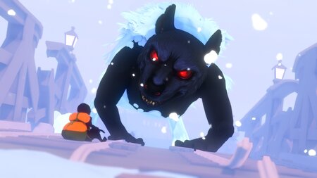 Белоснежный благородный волк, который позже сбрасывает шкуру и превращается в монстра отсылает к токсичным отношениям Кей, Скриншот из игры Sea of Solitude, 2019 г.
