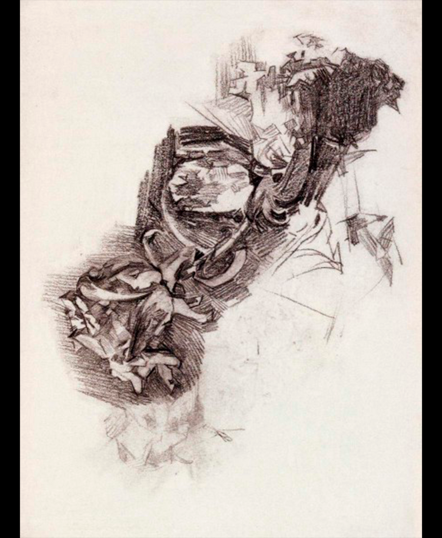Михаил Врубель. «Красные цветы и листья бегонии корзине.» 1886.