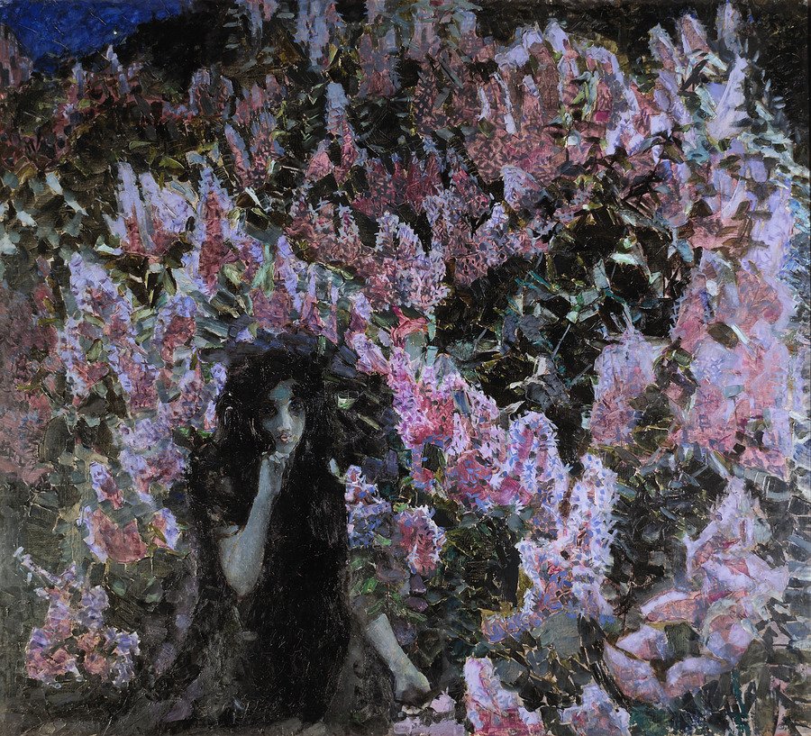Муза Михаила Врубеля, прекрасная женщина, на первый взгляд не всегда ясно — относящаяся к Божественному или человеческому всегда изображается с изобилием не менее прекрасного — обилия цветов, тонко подобранных и точно отражающих ее сущность.