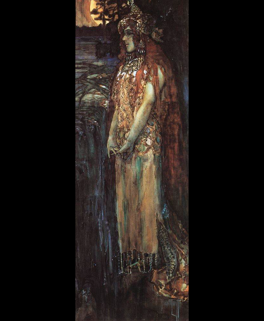 Михаил Врубель во многих своих произведениях обращался к русским мифам и сказкам. В основе сюжета всегда лежит синтез мистического с живой природой, на полотнах одно не существует без другого. Для каждого «персонажа» природа и естество вокруг было разным, окружающее всегда словно бы дополняло и раскрывала саму сущность с разных сторон, приоткрывала завесу тайны главного героя произведения.