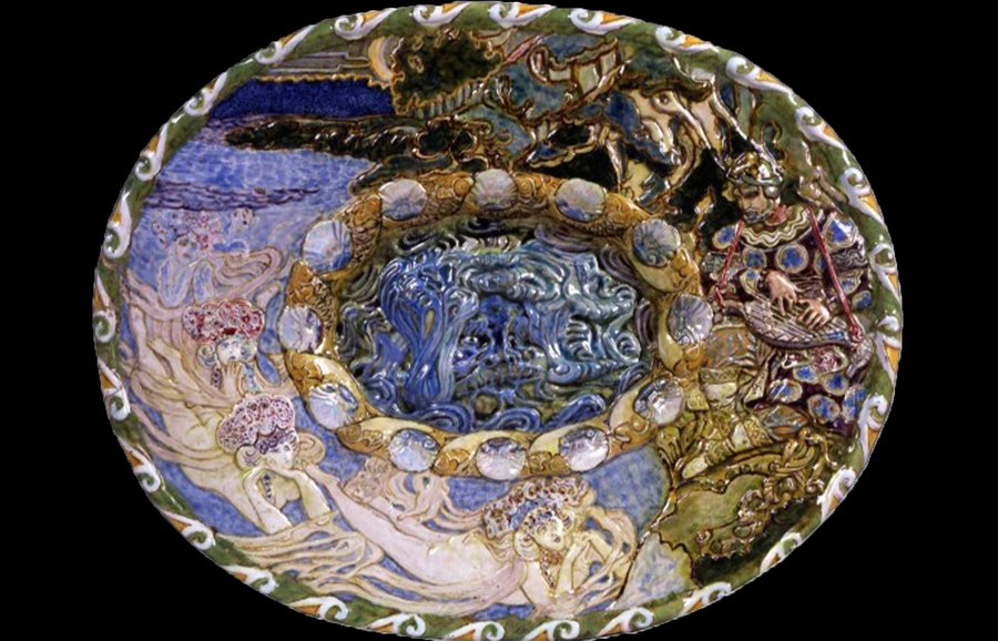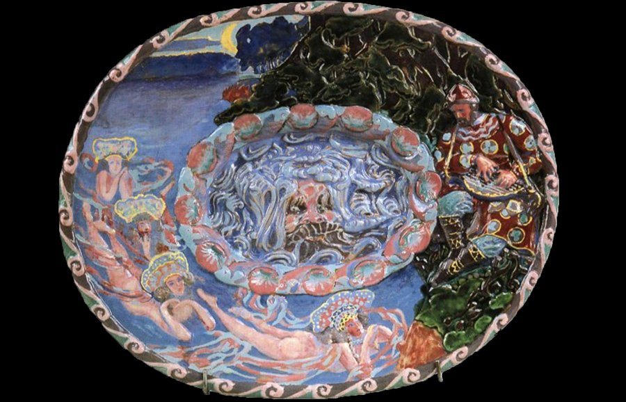Михаил Врубель. Блюдо. «Садко на берегу Ильмень-озера.» 1899. // Михаил Врубель. Блюдо. «Садко.» 1899.