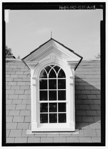 (1) Деталь мансардного окна, Thomas Farm, округ Фредерик (2) Дом Банистера, Брукфилд, округ Вустер (1936 г.)