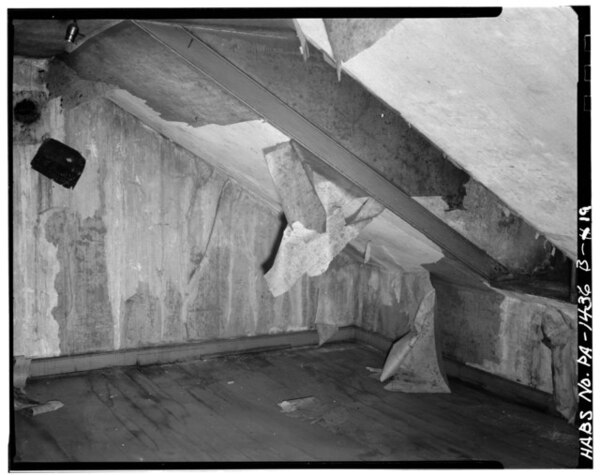 (1) Детальный вид на дверь юго-восточной мансардной комнаты (2003 г.) (2) Филадельфия, Уолнат-стрит (1933 г.)
