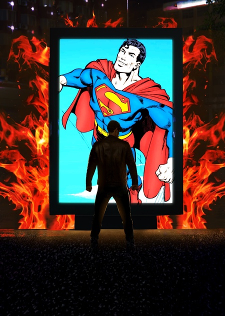 Супермен был изображен как обычный человек, Кларк Кент, который обрел свои суперспособности после того, как его родная планета была уничтожена. Он прибыл на Землю и был воспитан человеческими родителями, но обнаружил, что обладает невероятной силой, способностью летать и другими сверхъестественными способностями.