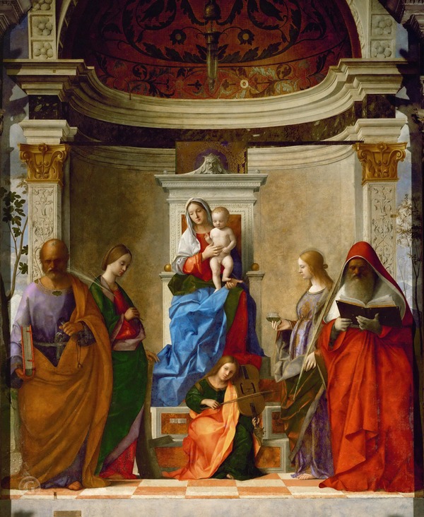 Д. Беллини, «Мадонна с младенцем на троне и святыми Петром, Екатериной, Лючией и Иеронимом». 1515