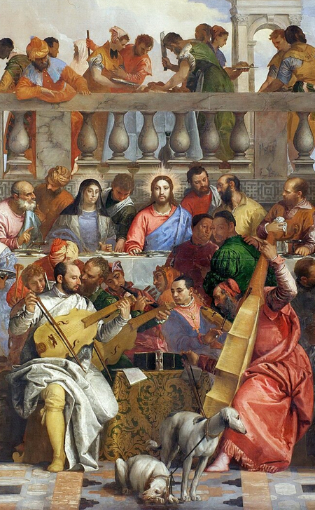 В произведении «Брак в Кане Галилейской» Веронезе изображает квартет художников венецианской школы. Слева направо: сам Паоло Веронезе (с альтом), Якопо Бассано (с корнетом), Тинторетто (с лирой да браччо или скрипкой), Тициан (с виолой да гамба).