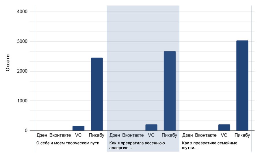 Платформы имеют разную природу: Пикабу — хороший охват, слабая реакция. VC — баланс между охватом и вовлечённостью, отличное место для экспертных и личных историй. Дзен и ВКонтакте — неэффективны без дополнительного продвижения. YouTube — лидер по просмотрам и реакции.