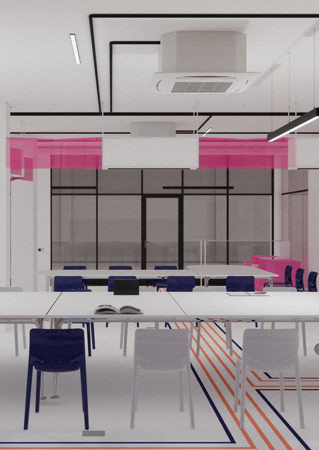 Основной задачей было создать функциональное пространство, отвечающее потребностям учебного процесса. Развить креативную и инновационную атмосферу.