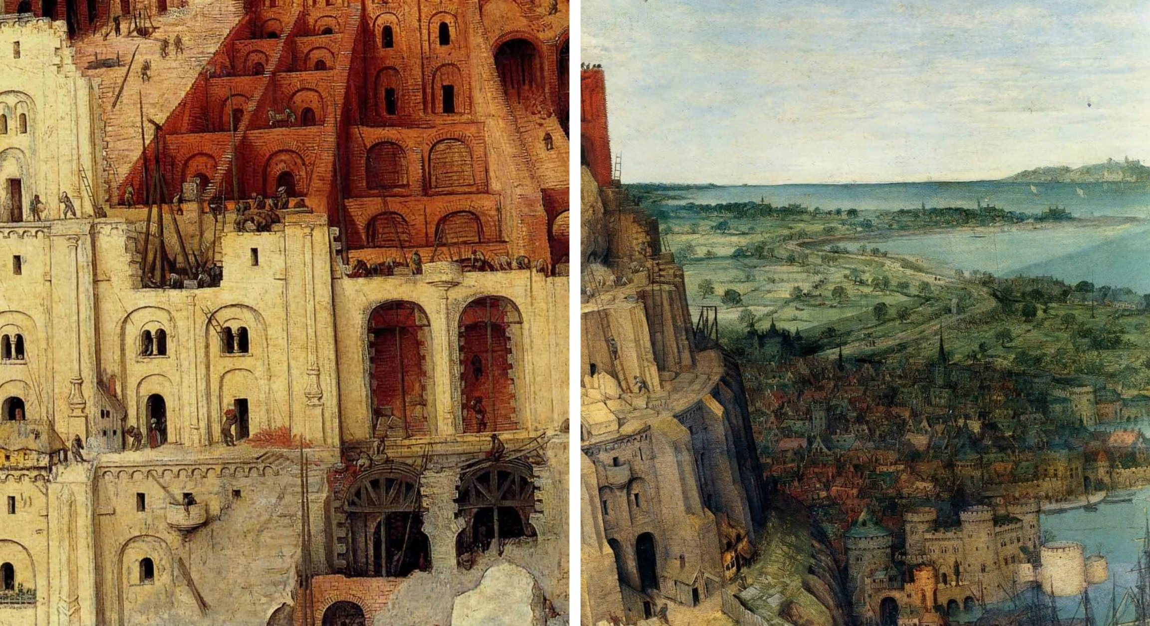 Питер Брейгель Старший, «Вавилонская башня», 1563 // Питер Брейгель Младший, «Вавилонская башня», 1604