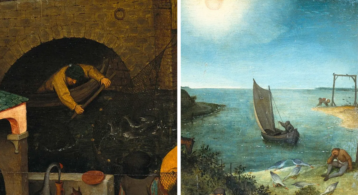 Питер Брейгель Старший также любил изображать природу. В его картинах все персонажи словно являются дополнением к пейзажу и в каждом подобном произведении есть две стихии (земля и вода). Кроме того, если присмотреться, то можно заметить, что передний план более мрачный, чем дальний. С помощью этого приема Питер Старший показывает реальность, в которой живет человек и мечты, которые остаются у людей в их головах.