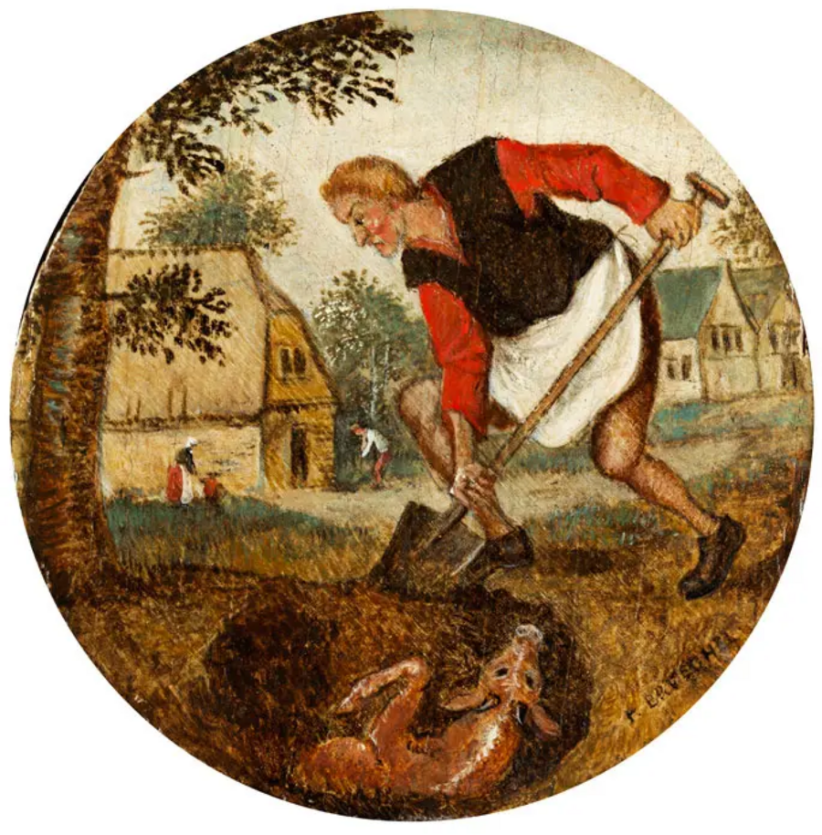 Крестьянин, засыпающий яму с теленком // Artchive URL: https://artchive.ru/pieterbruegheltheyounger/works/535861~Krest'janin_zasypajuschij_jamu_s_telenkom_Allegorija_nesvoevremennykh_dejstvij (дата обращения: 13.11.2024)