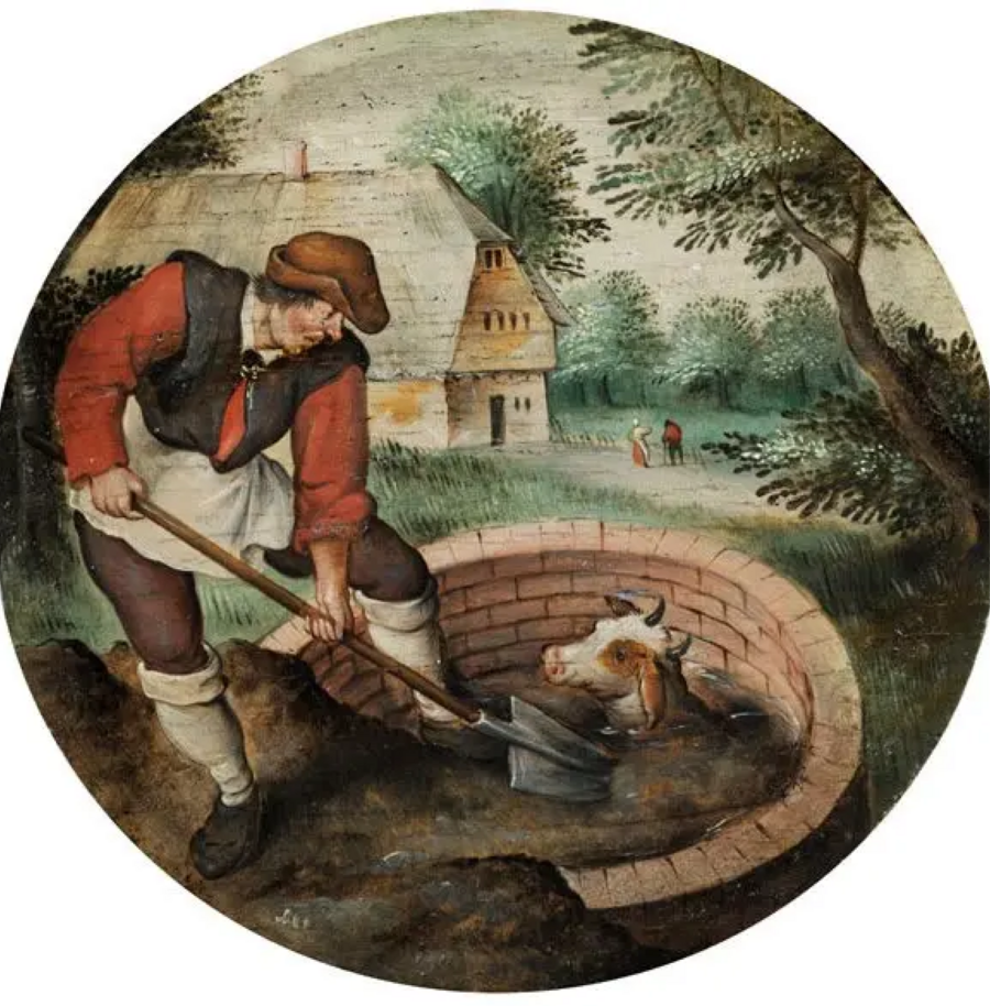 Питер Брейгель Младший, «Крестьянин и теленок в яме», 1616