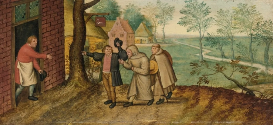 Питер Брейгель Младший, «Сцены из жизни крестьян. Монахи у трактира», 1620-е