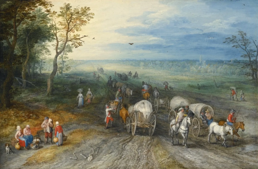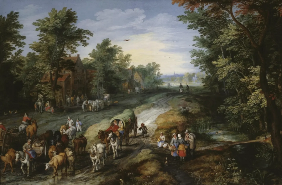Ян Брейгель Старший, «Пейзаж с путешественниками на сельской дороге», 1610-е