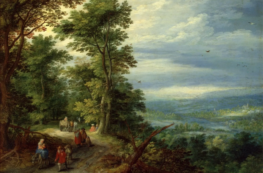 Ян Брейгель Старший, «Лесной пейзаж с отдыхом на пути в Египет», 1607