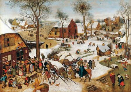 Питер Брейгель Старший, «Перепись в Вифлееме», 1566 // Питер Брейгель Младший, «Перепись в Вифлееме», 1607